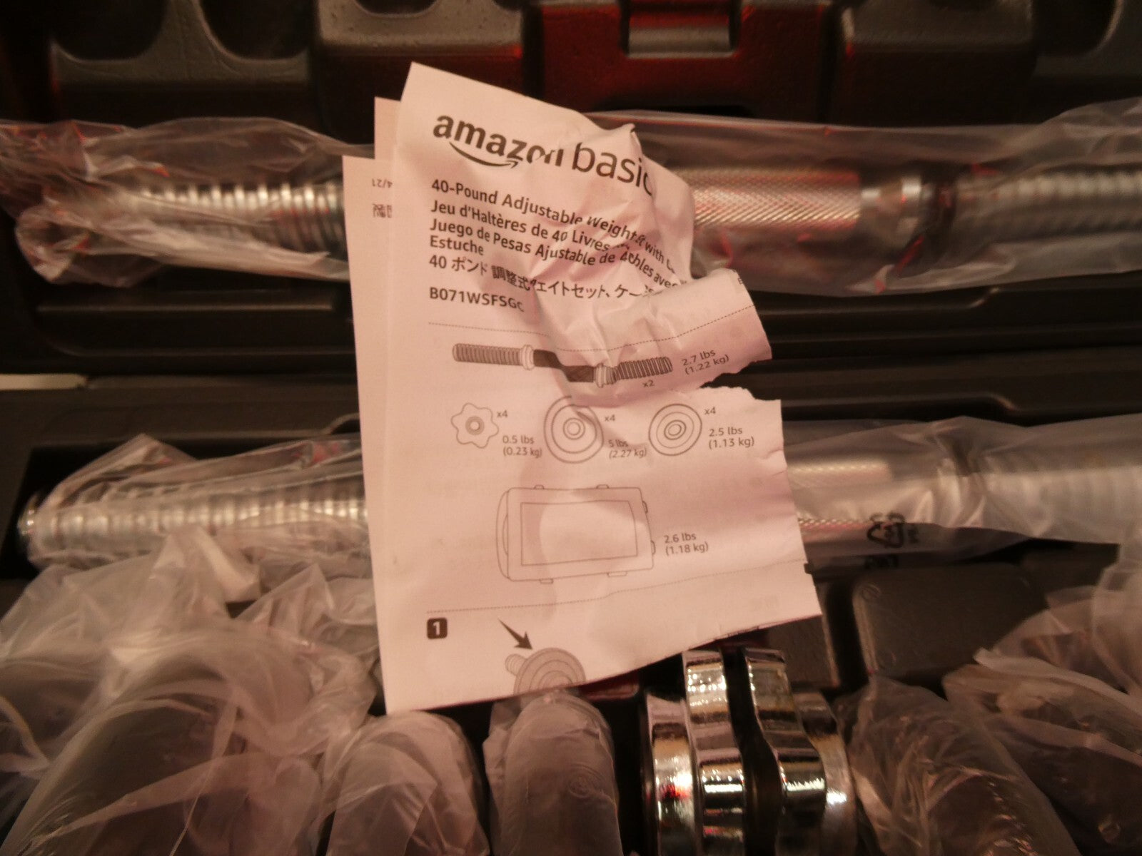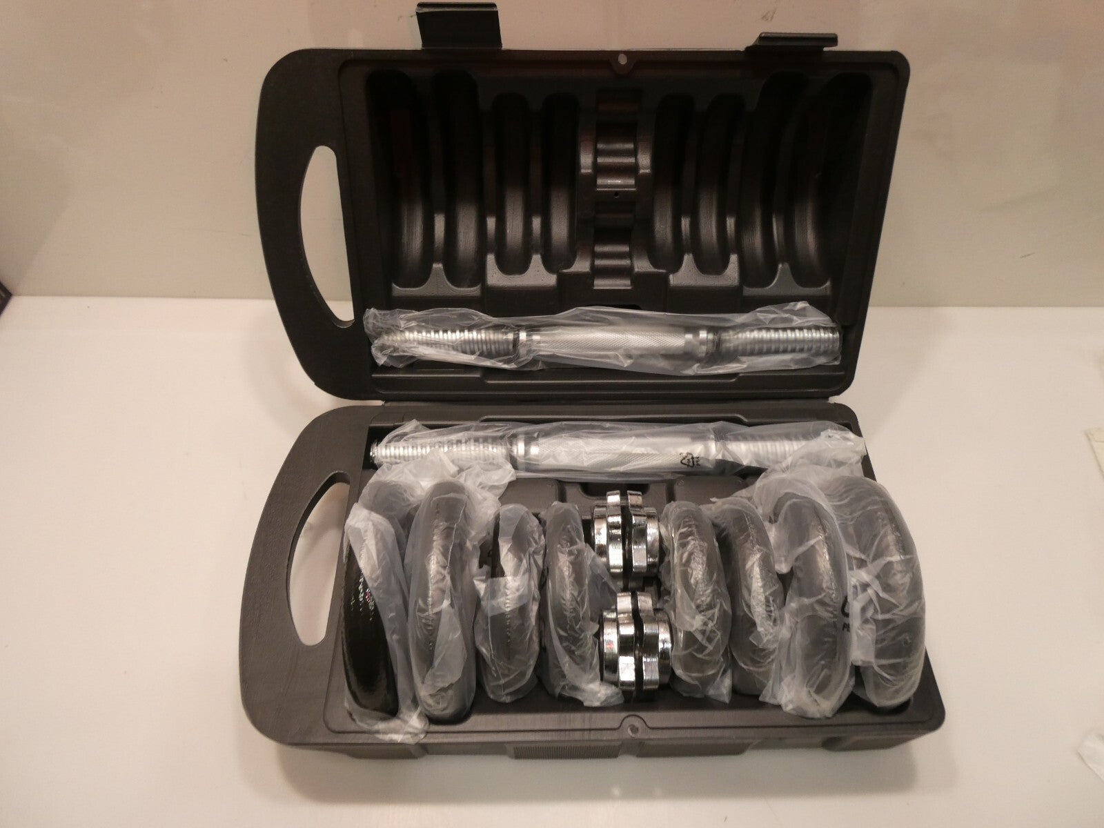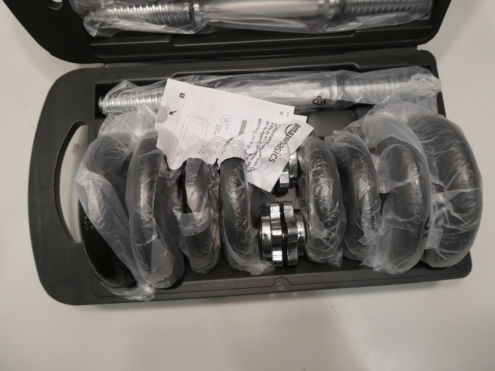 You are buying AmazonBasics Adjustable Barbell Lifting Dumbells Weight Set with Case - 17.2 kg, Black, Its new never used. Box... Read more