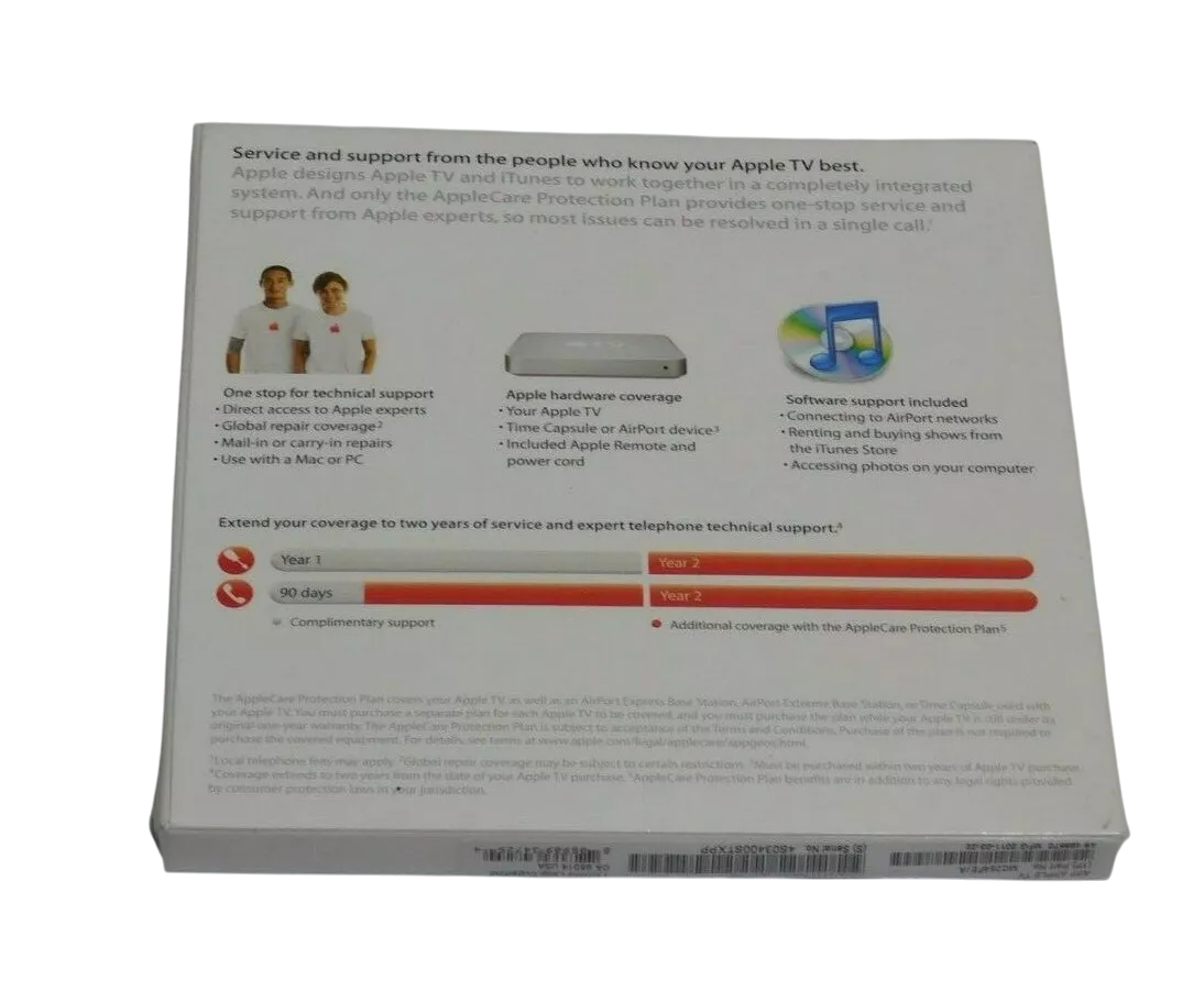 You are buying AppleCare Protection Plan for Apple TV - 1Year - MC264FE/A, Its brand new.INT REF: C-30, C-32 Key Features... Read more