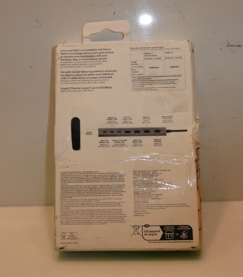 Belkin Connect Universal USB-C 8-in-1 Dual Display Core Hub w/Silicon Motion Tec