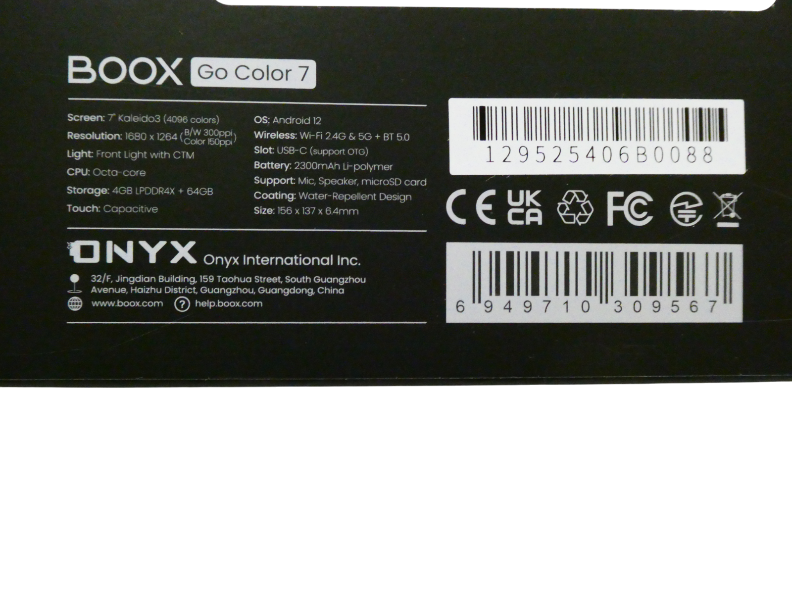 BOOX Go Color 7 ePaper Tablet 7" Color 64GB Android 12 E-Ink Light BT WiFi (Blac