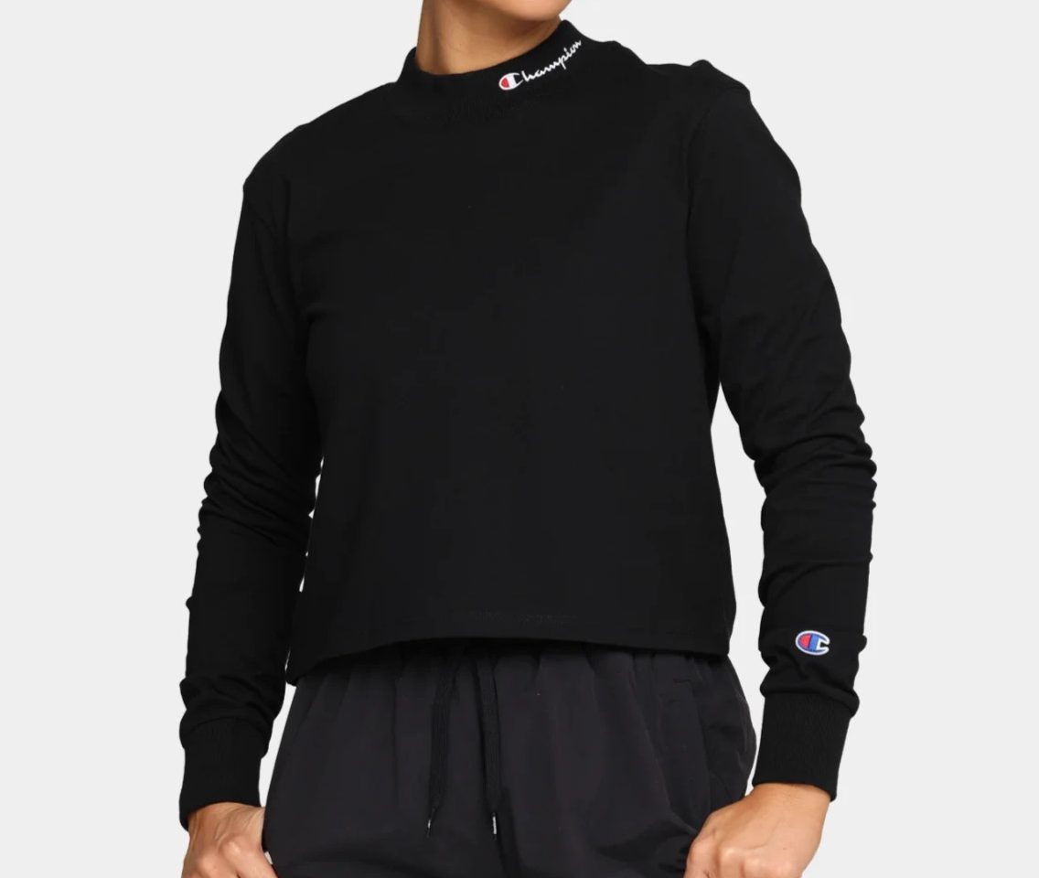 Champion Women's Heritage Mock Neck Long Sleeve Tee, Black, Large