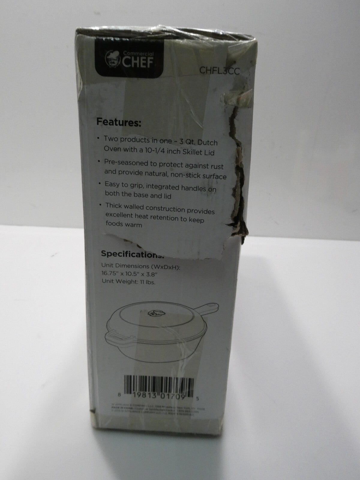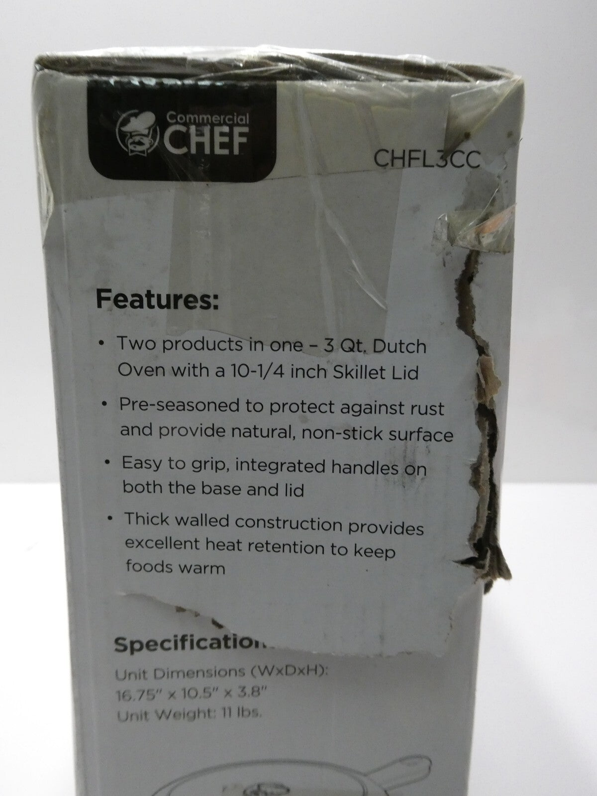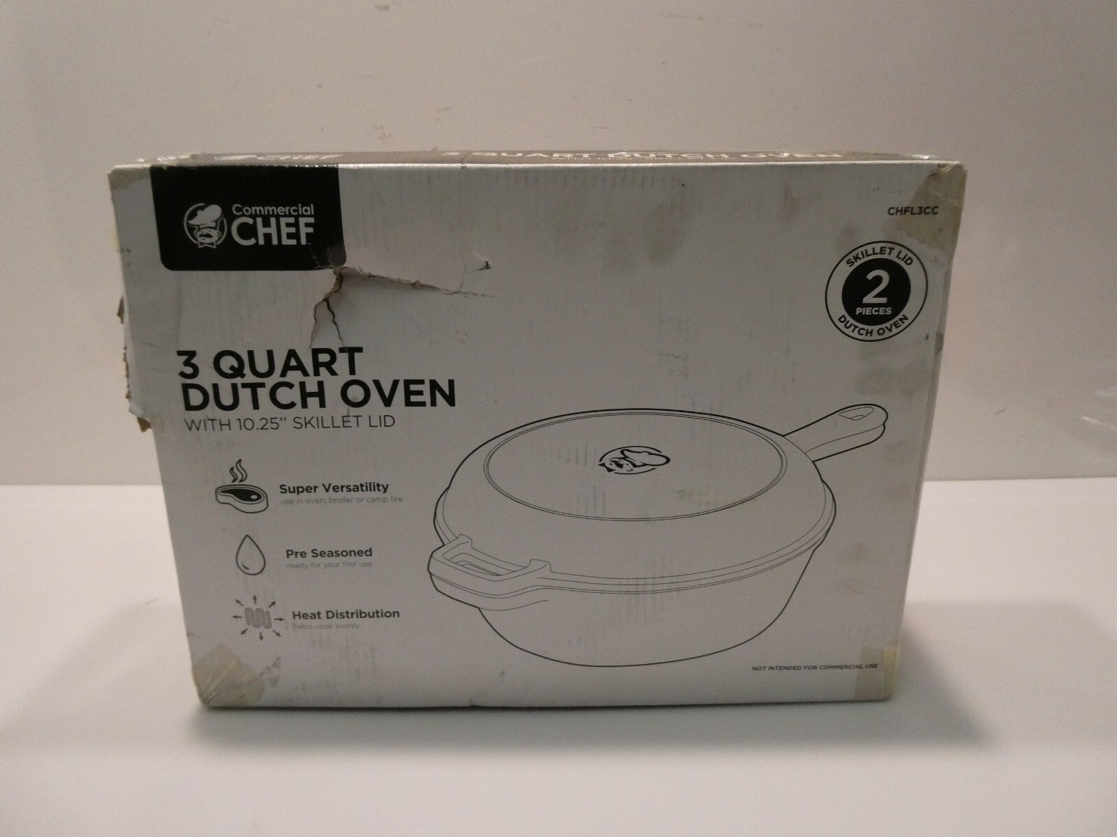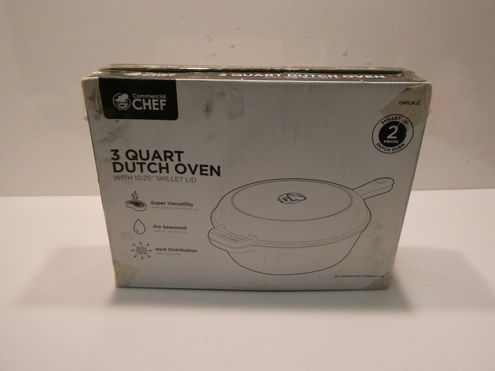 You are buying Commercial Chef 3 Qt Cast Iron Dutch Oven with Skillet Lid CHFL3CC, Its new never used. Box is... Read more