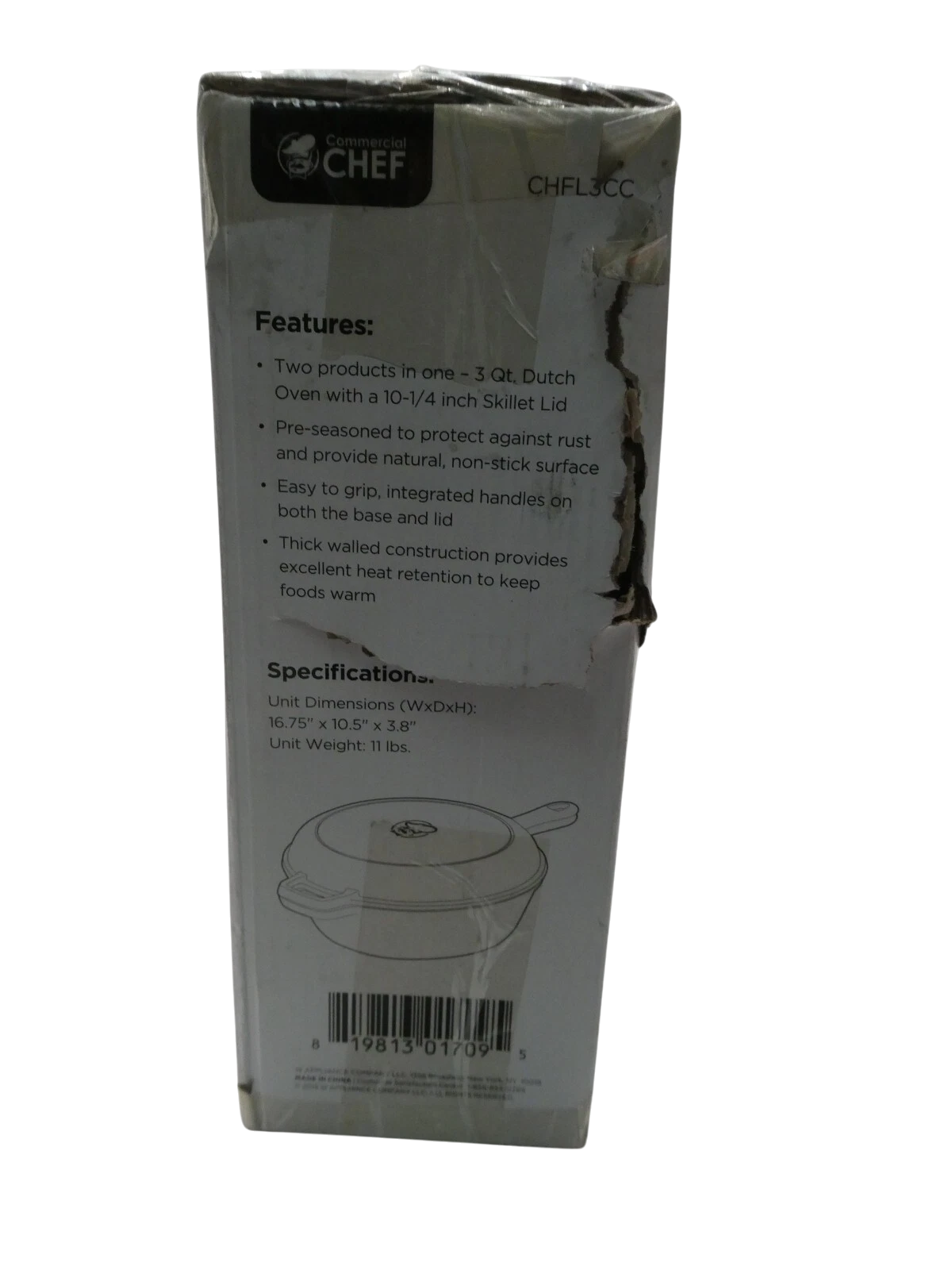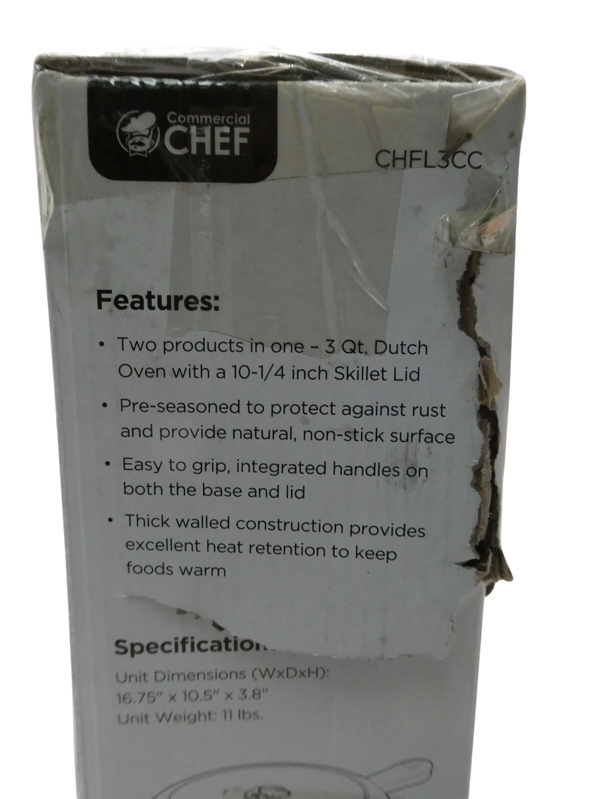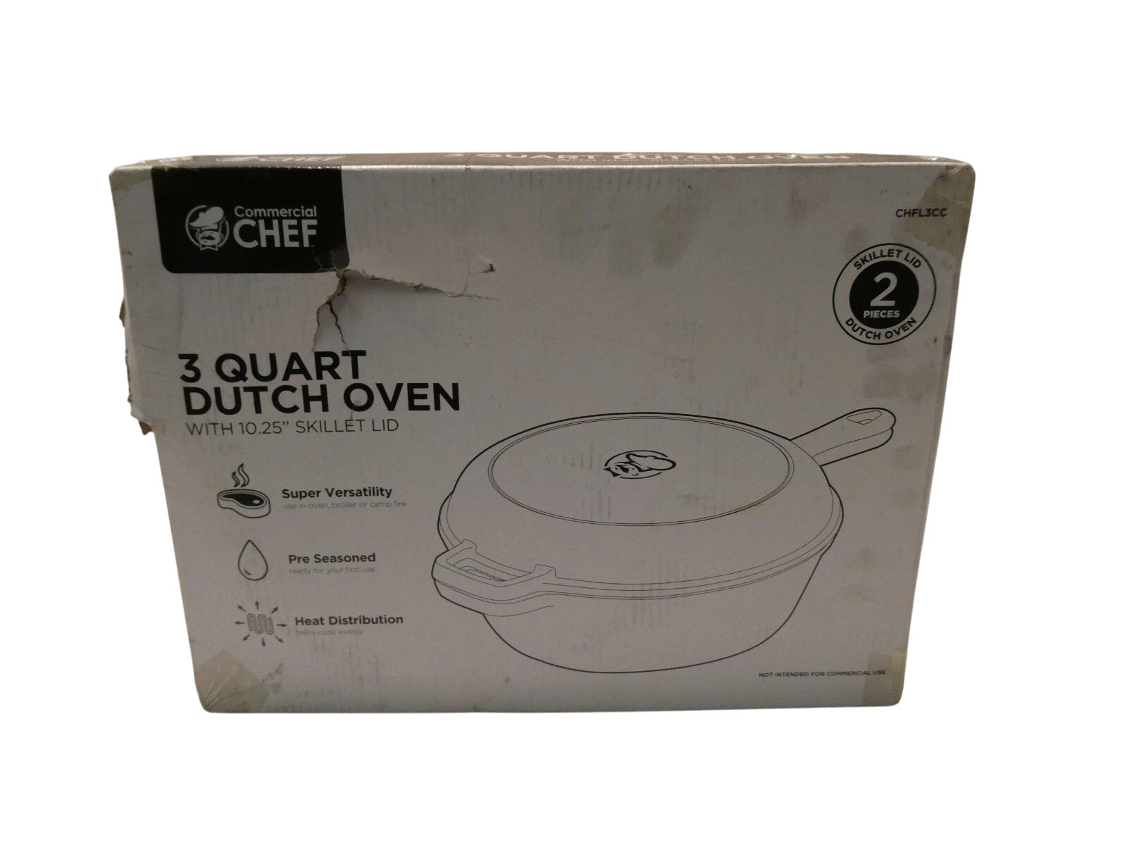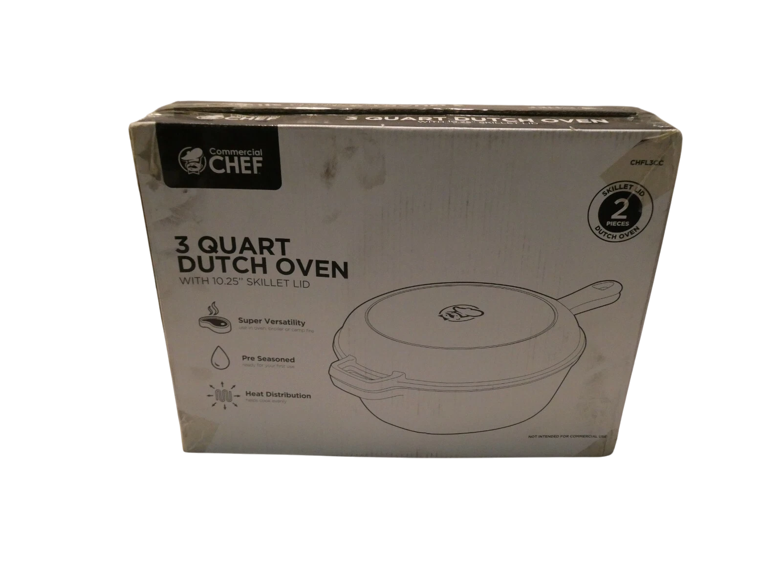 You are buying Commercial Chef 3 Qt Cast Iron Dutch Oven with Skillet Lid CHFL3CC, Its new never used. Box is... Read more
