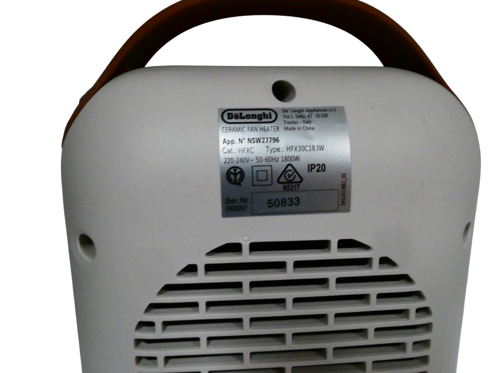 De'Longhi Capsule Fan Heater, Self-Regulating Ceramic Heater HFX30C18.IW, Ivory