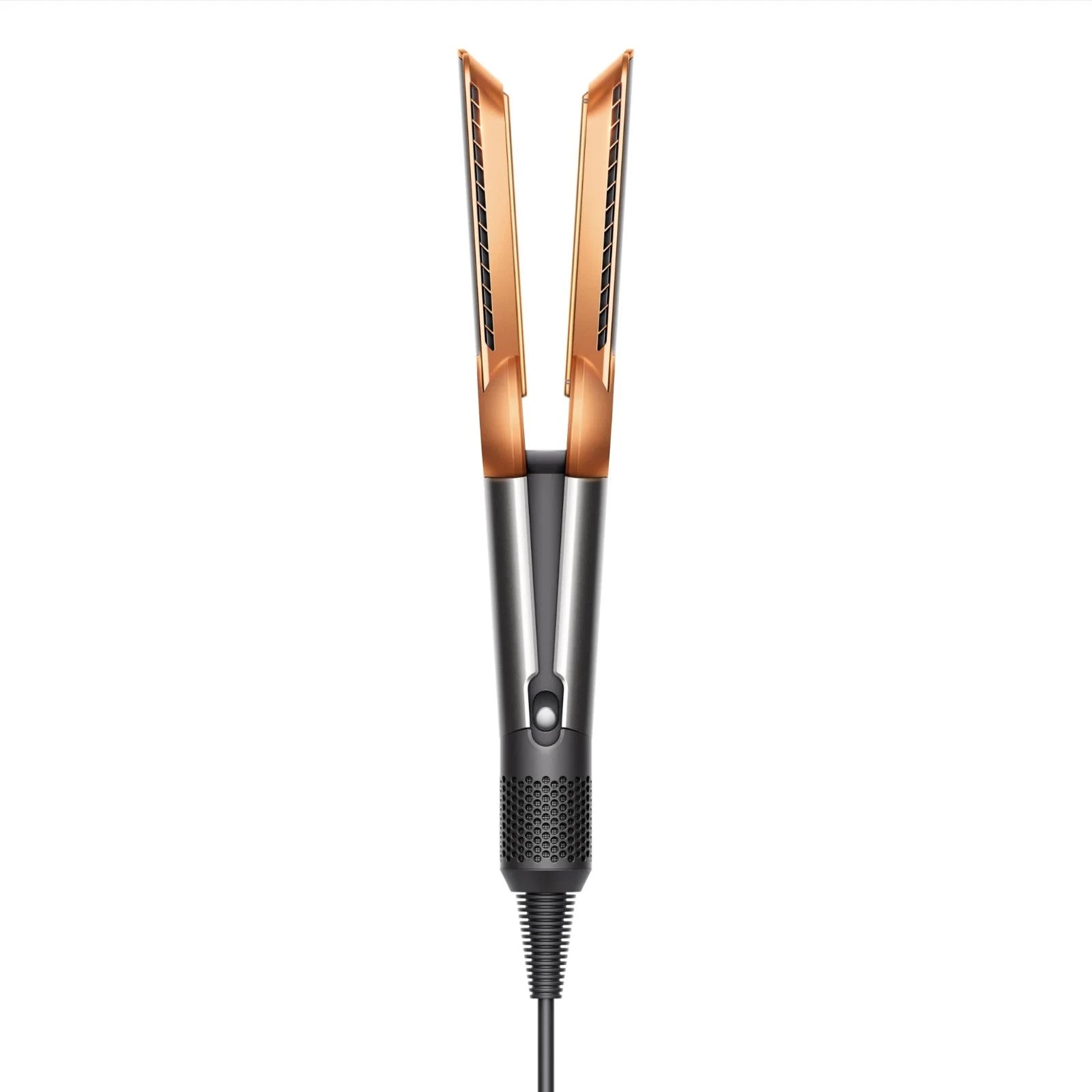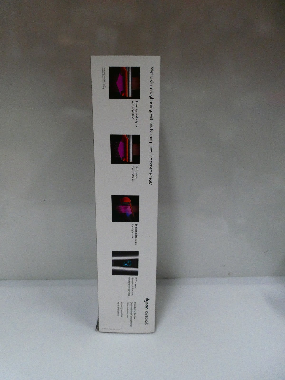 Uses only air. Unlike conventional straighteners, the Dyson Airstrait™ dryer and straightener doesn’t use hot plates. Using only air to create straight looks, without heat damage.