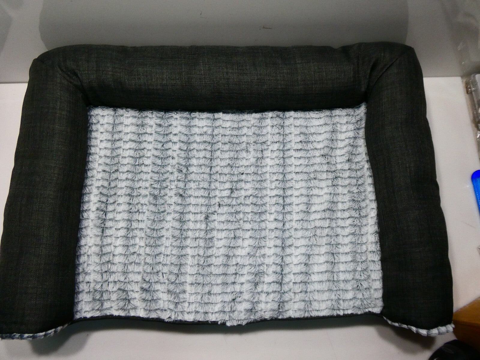 Furhaven Pet Dog Bed Orthopedic Plush Luxe Faux Fur and Performance Linen - M