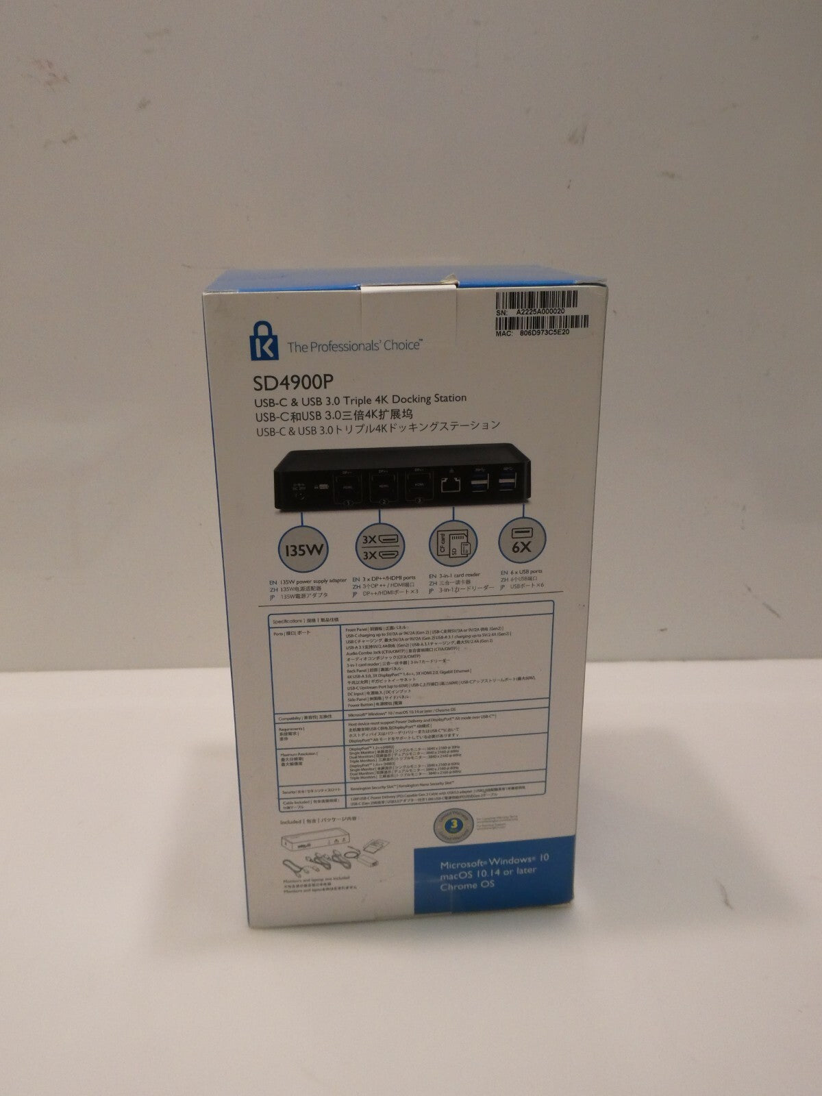 You are buying Kensington SD4900P Triple 4k Display Docking Station for Windows, MacBooks and Surface, It was used around a week,... Read more