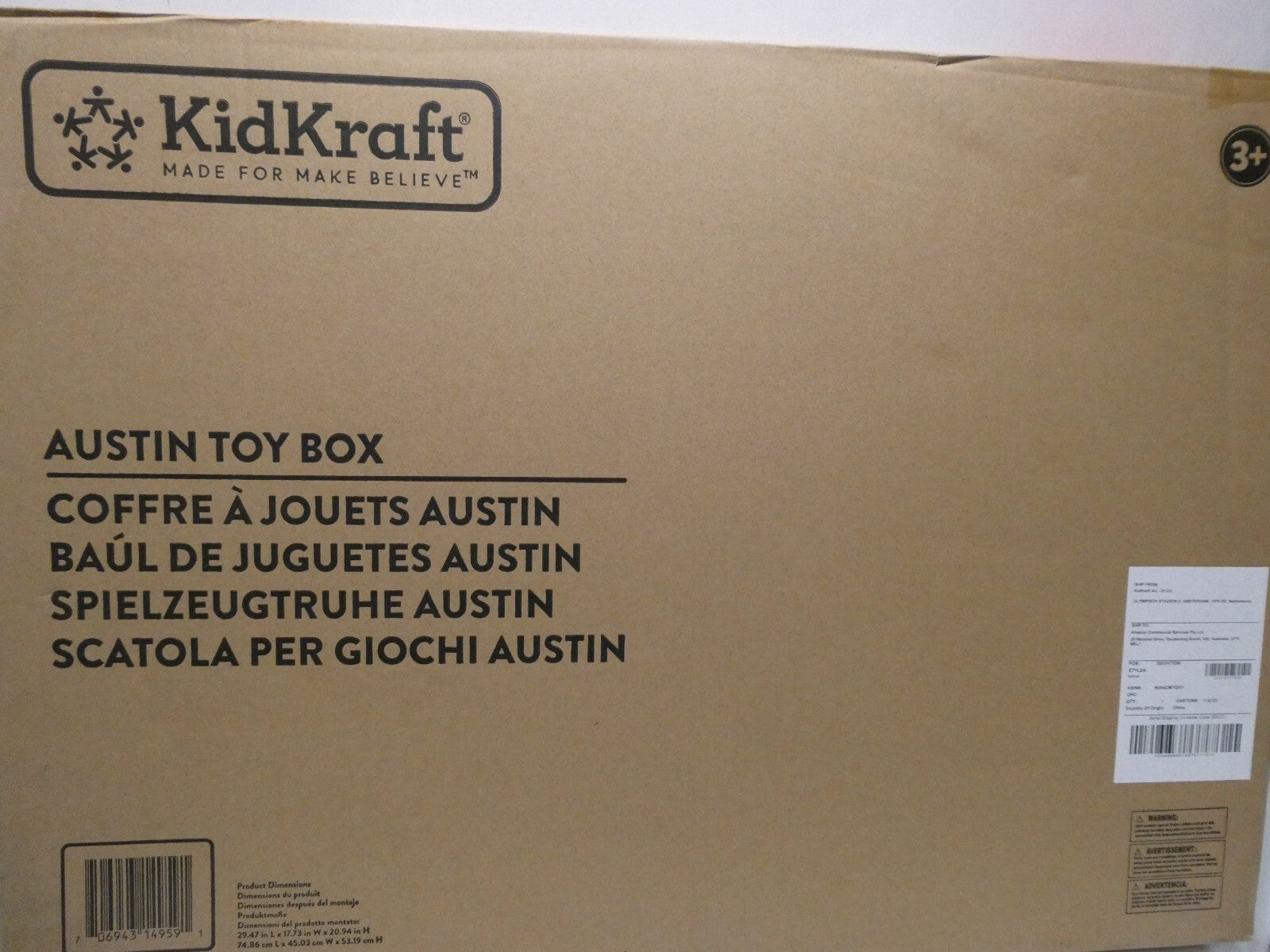 You are buying KidKraft Austin Toy Box - Blueberry, Its new never used.INT REF: A9947Features: Safety hinge prevents lid from dropping... Read more