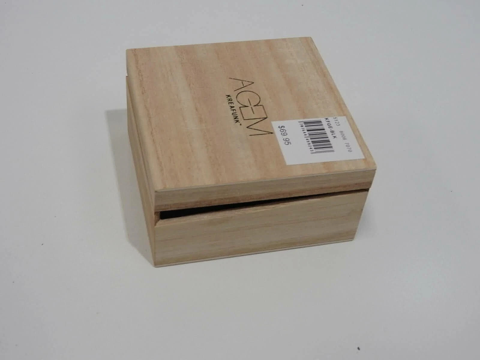 • Wood gift box with sliding lid, Kreafunk branding and musical quote