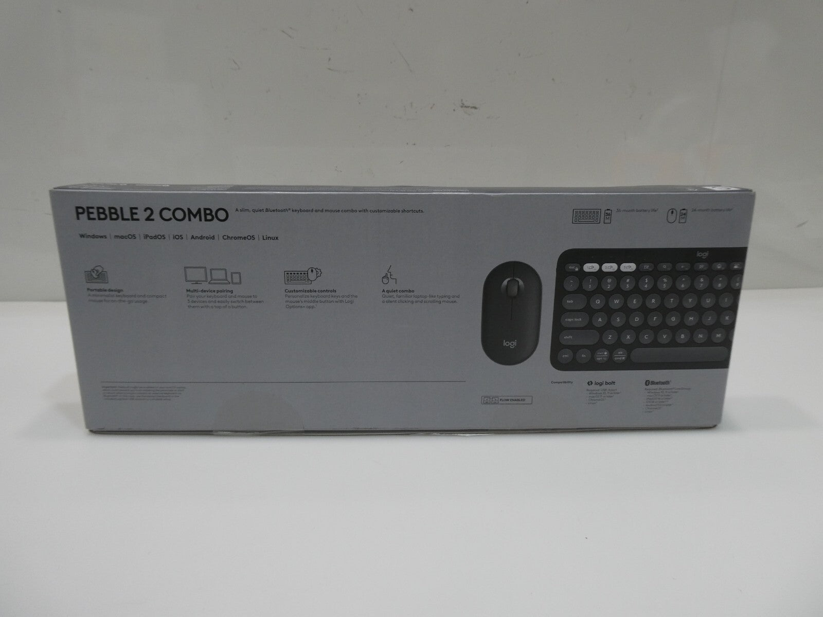 You are buying Logitech Pebble 2 Wireless Keyboard and Mouse Combo - Tonal Graphite, Its new never used.INT REF: B4053Features: Slim,... Read more
