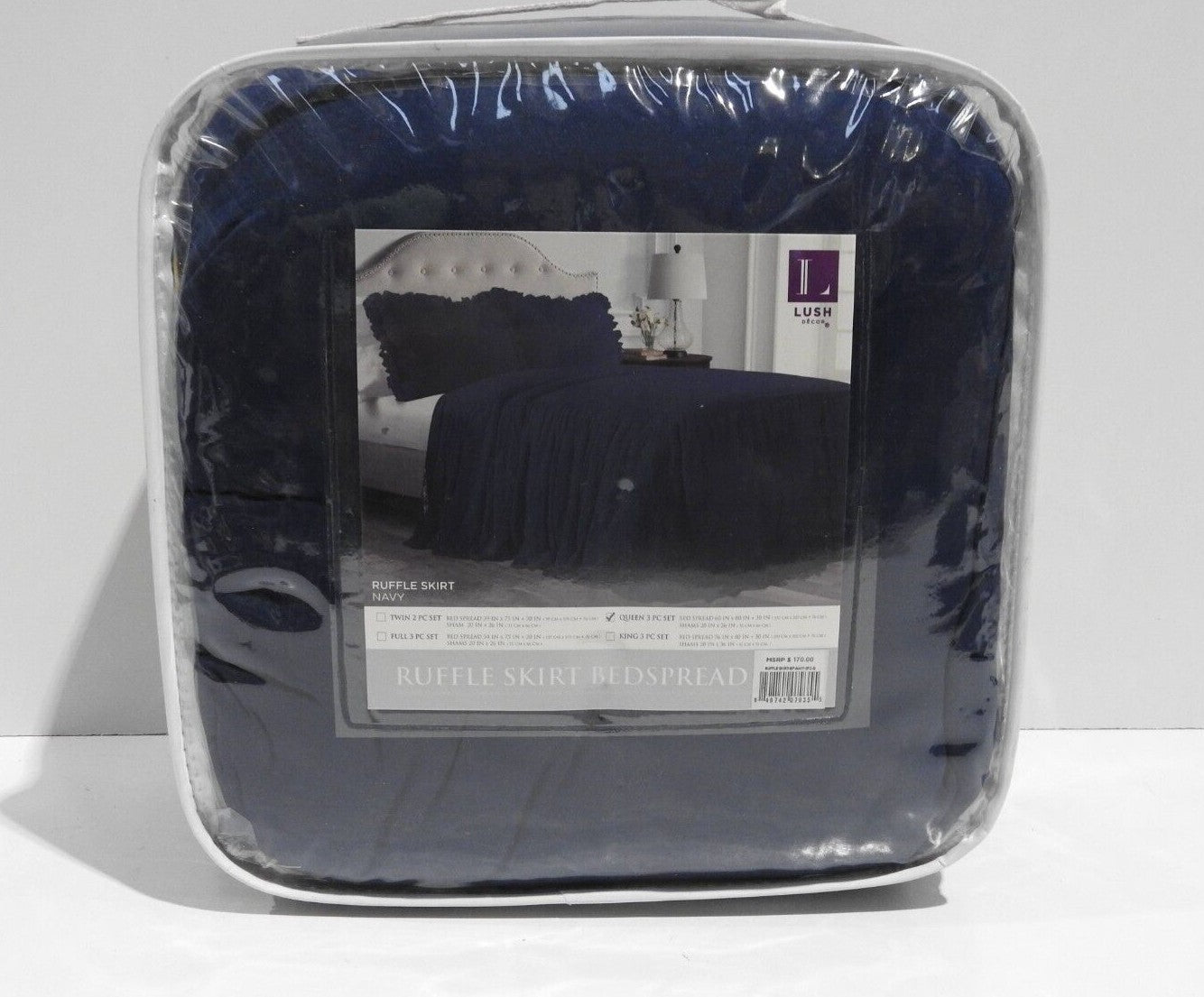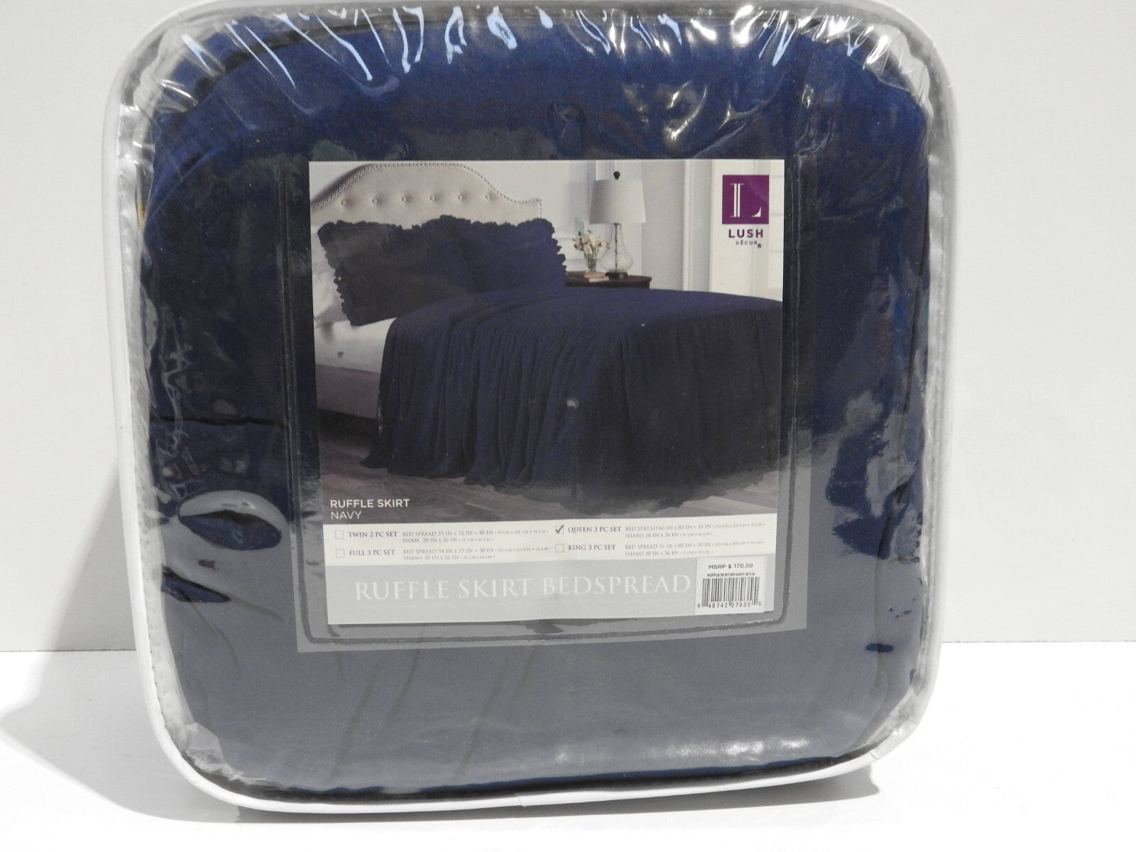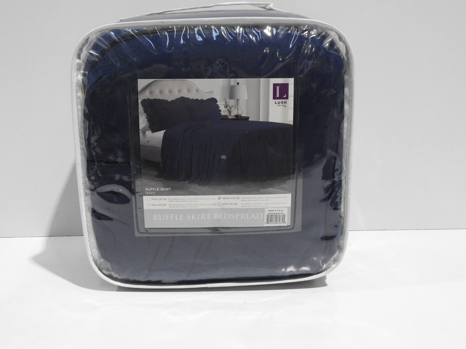 You are buying Lush Decor Ruffle Skirt Bedspread, Navy, Queen, Its new never used. INT REF: A1940/AY1 & A3530/AT4 & AZ1 ... Read more
