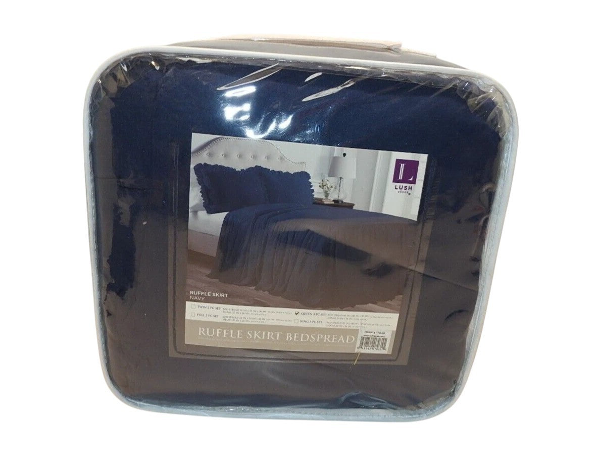 Lush Decor Ruffle Skirt Bedspread, Navy, Queen