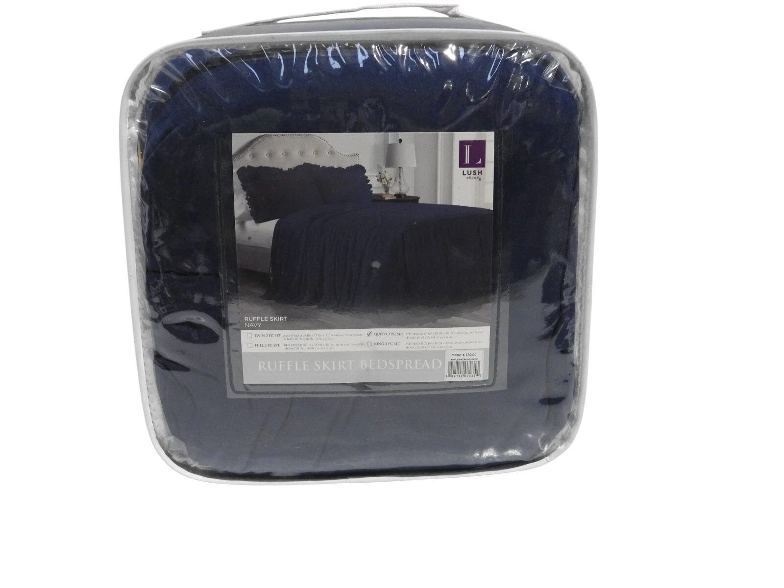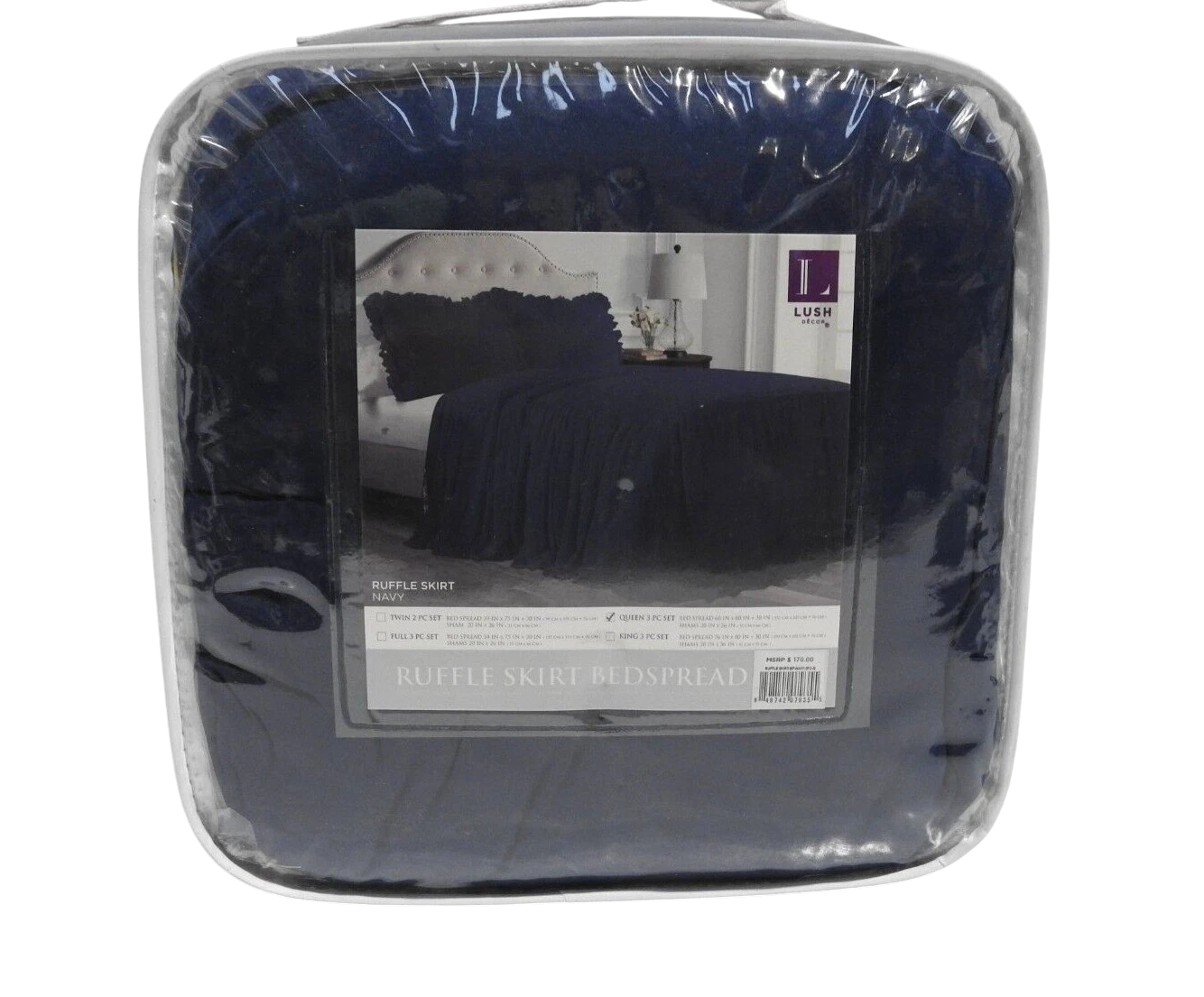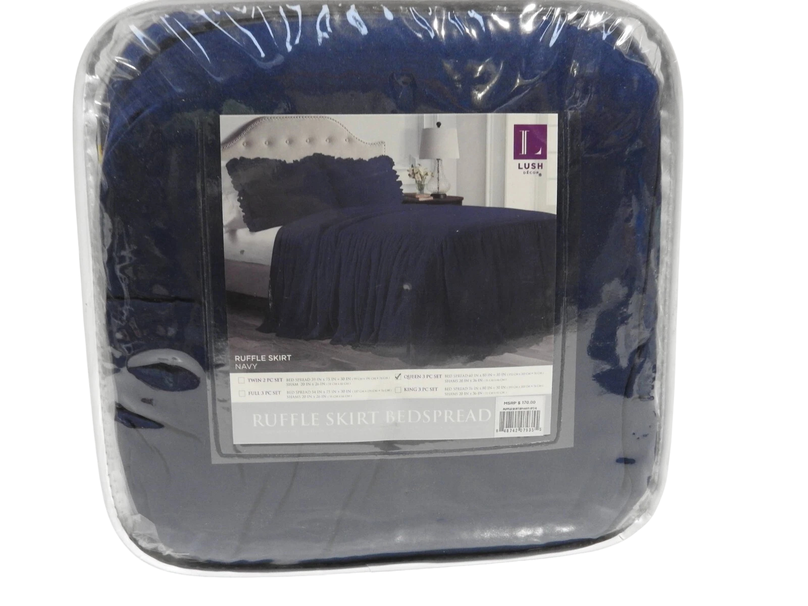 You are buying Lush Decor Ruffle Skirt Bedspread, Navy, Queen, Its new never used.INT REF: A1940/AY1 & A3530/AT4 & AZ1 Features: 100%... Read more