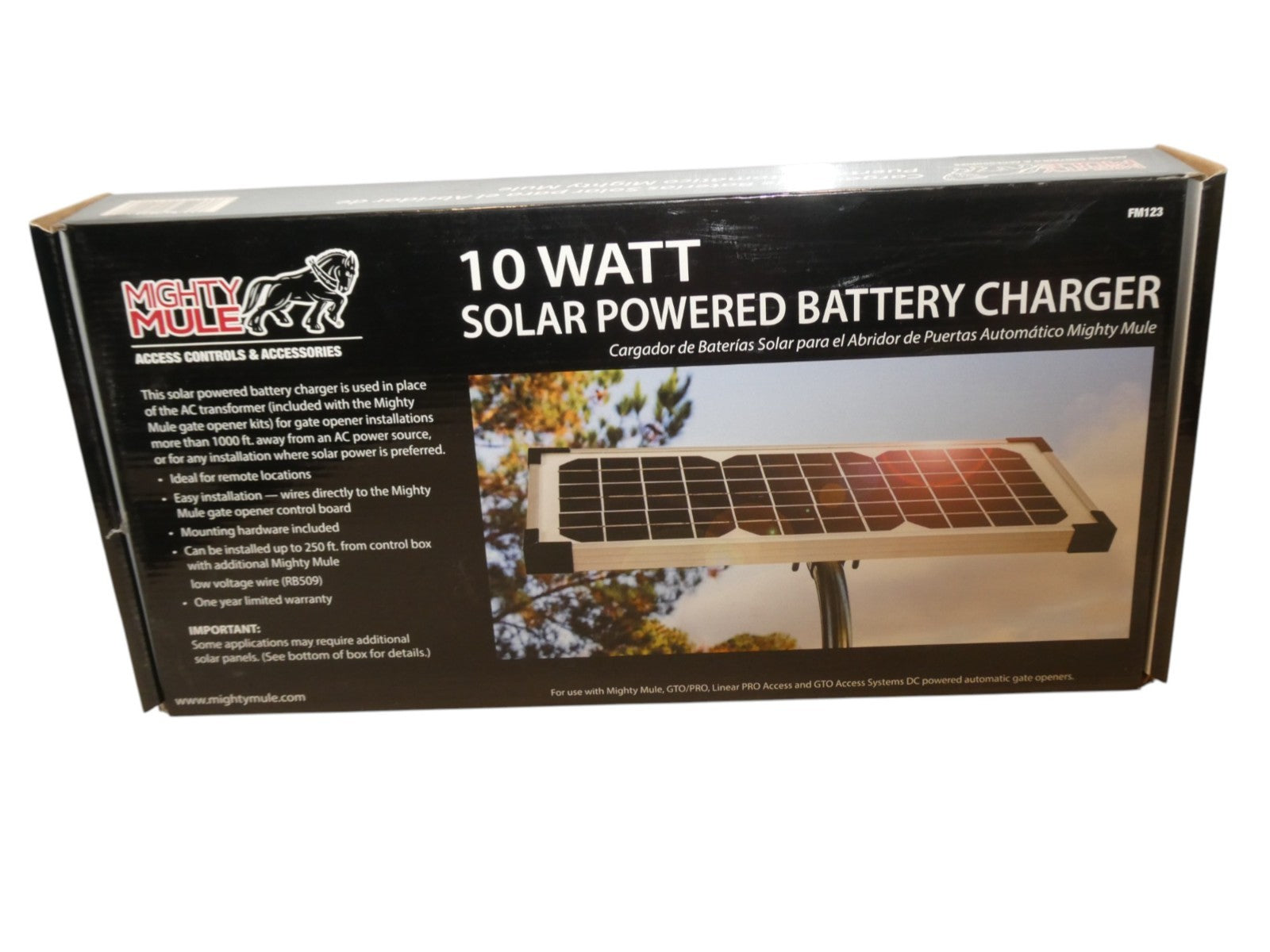You are buying 10 Watt Solar Panel Kit (FM123) for Mighty Mule Automatic Gate Openers, Its brand new.INT REF: A9571 &... Read more