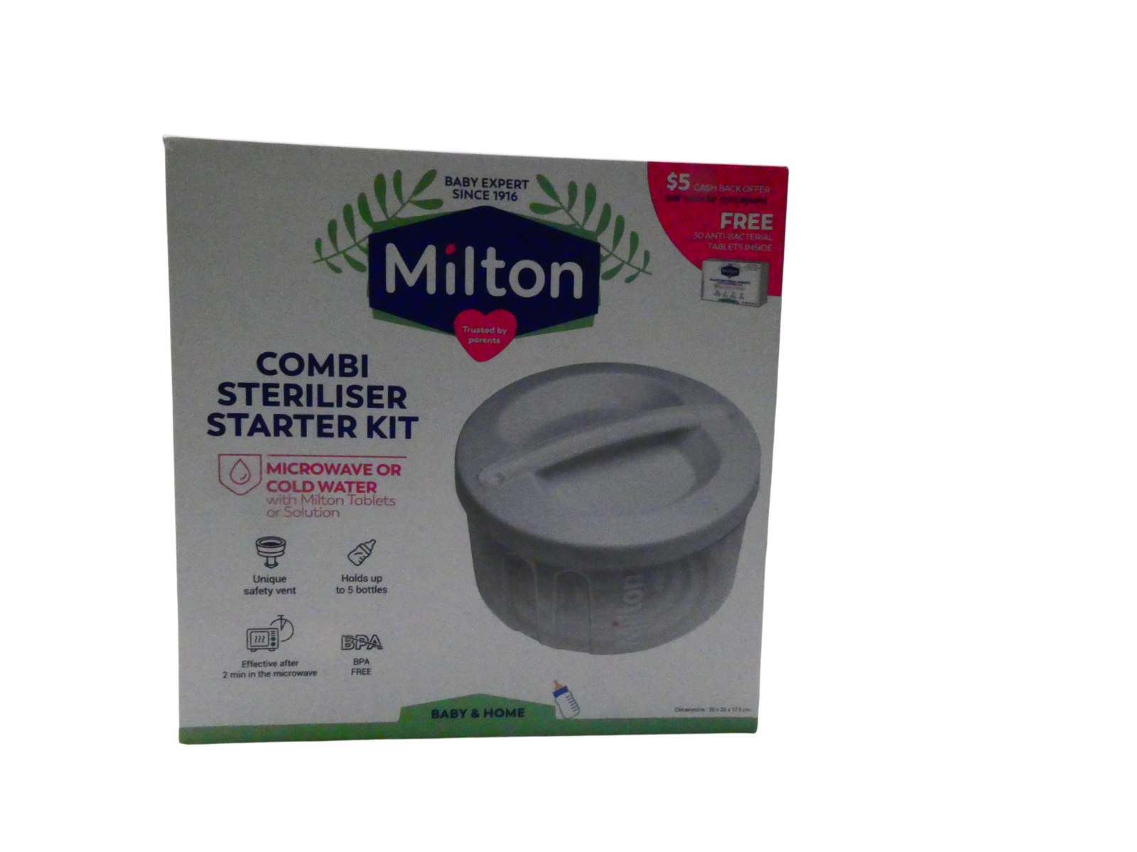 Milton 2 in 1 Combi Steriliser Starter Kit | Use in Microwave in 2 Mins |Cold Wa