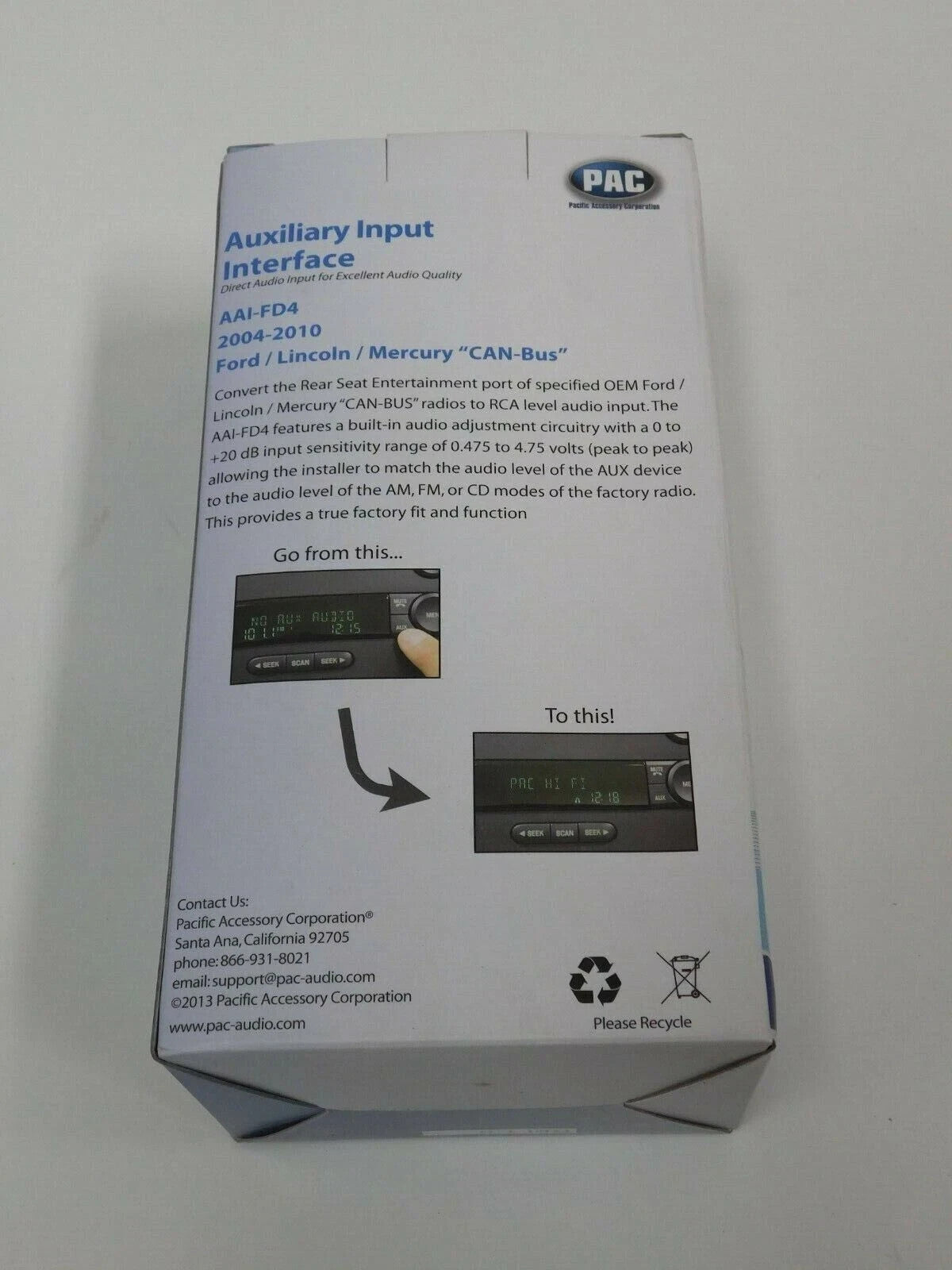 PAC AAI-FD4 Auxiliary Input Adapter for Select Ford/Lincoln/Mercury CAN-BUS Fact
