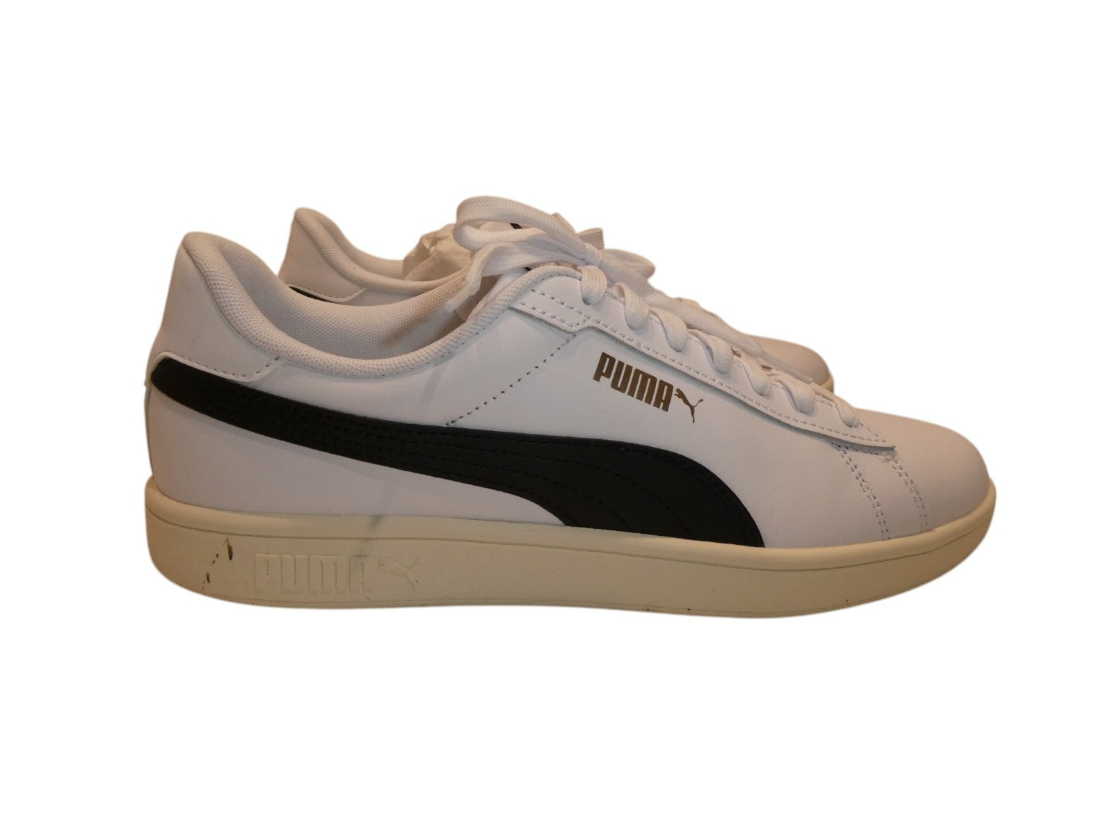 You are buying PUMA Unisex Smash 3.0 Leather Sneaker, White/Black/Gold/Frosted Ivory, US 9, It was used only few times, Completely new... Read more