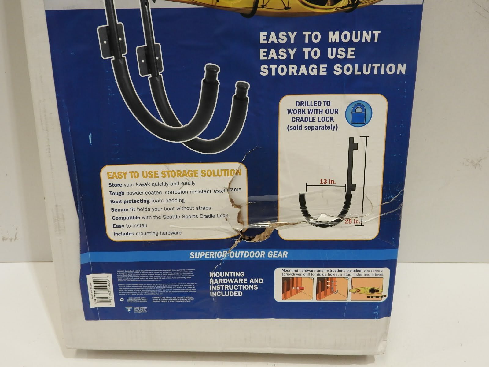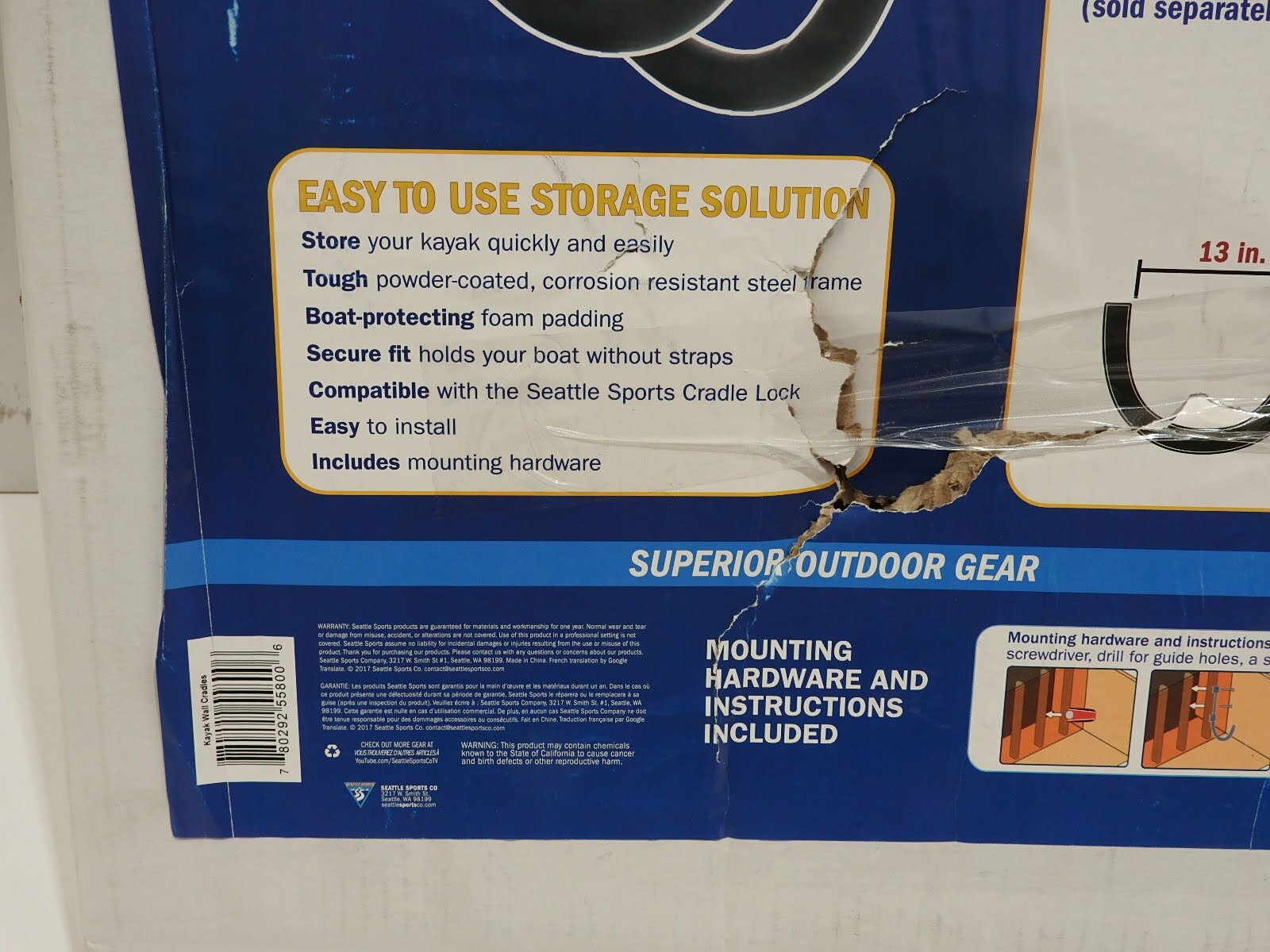 You are buying Seattle Sports Kayak Wall Cradle Hooks, Its new never used. Box opened and checked. Box is damaged. Postage only... Read more