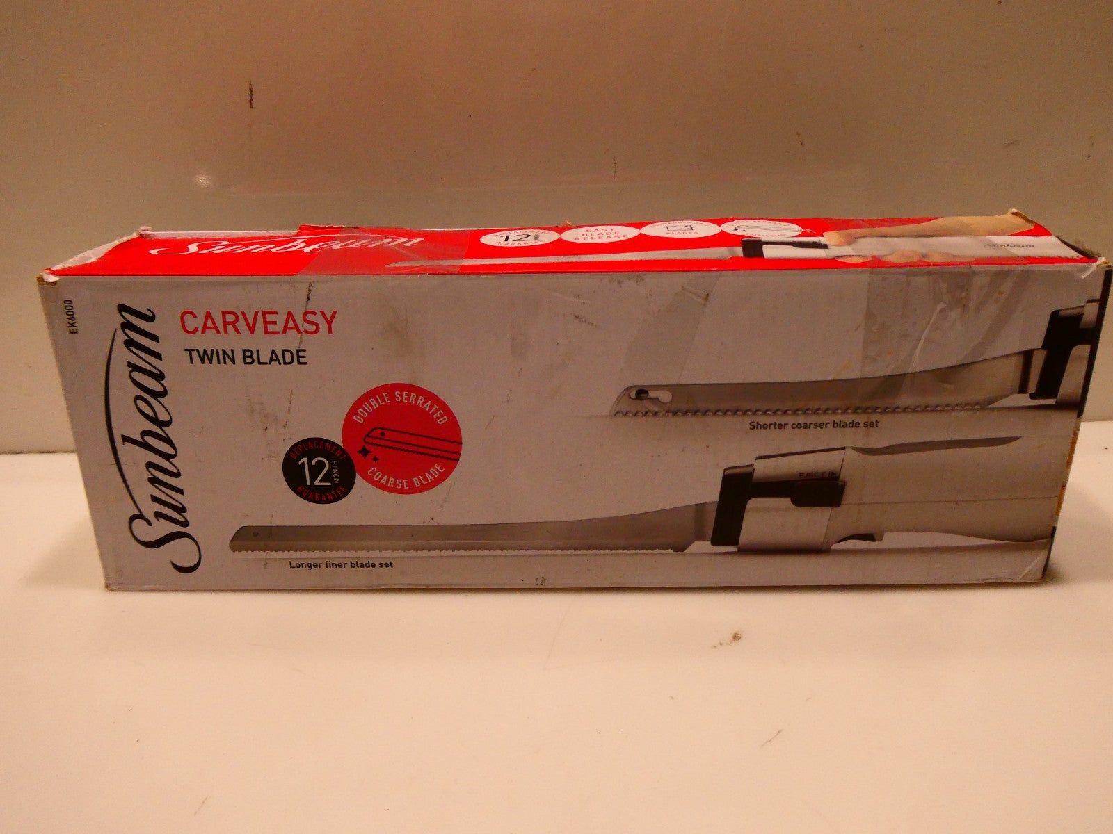 You are buying Sunbeam EK6000 Carveasy Twin Blade Electric Knife - White, It was used around a month in good working... Read more